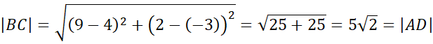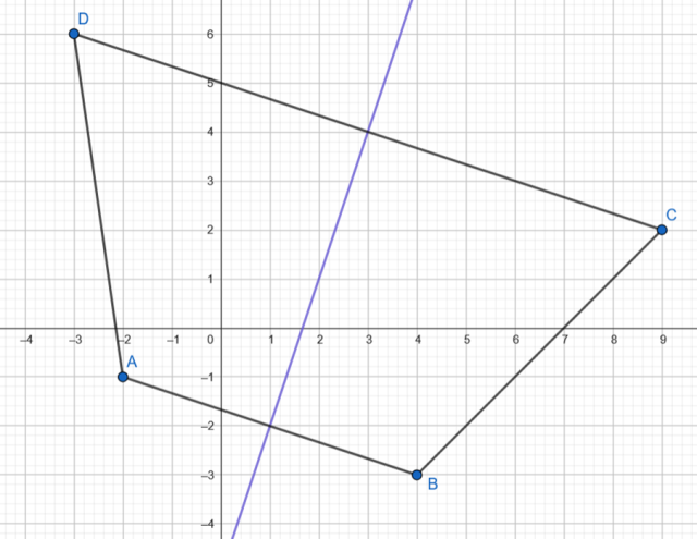 jest osią symetrii trapezu równoramiennego ABCD o podstawach AB i CD. Dane są dwa wierzchołki tego trapezu: A=(-2,-1), C=(9,2).