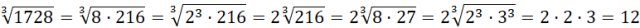 Oblicz podane pierwiastki. Jeżeli od razu nie wiesz, ile równa się pierwiastek podanej liczby, możesz rozbić liczbę pod pierwiastkiem na iloczyn liczb których pierwiastki znasz. Zauważ, że w przeciwieństwie do pierwiastków kwadratowych, pierwiastki sześcienne mogą być równe liczbom ujemnym.