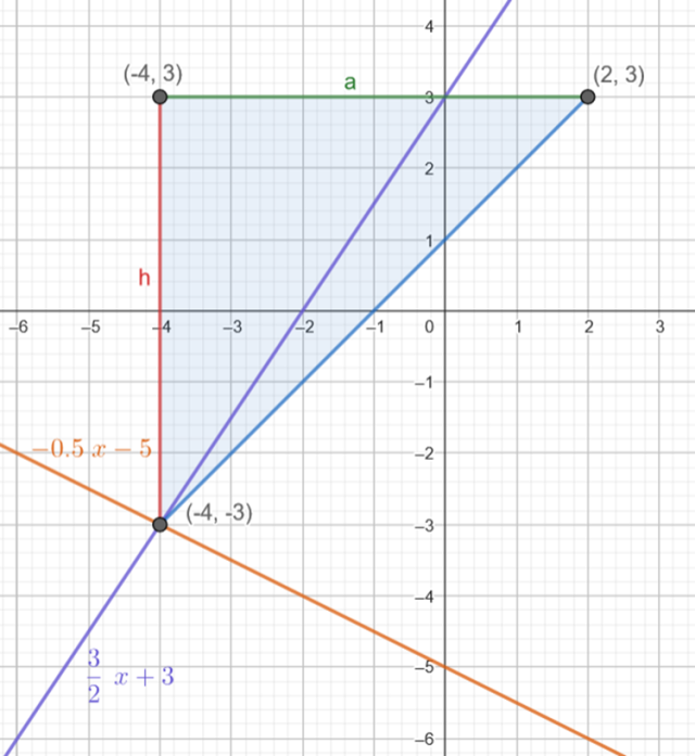 Następnie zaznacz w układzie współrzędnych punkty A, B i C. Zaznacz wysokość i podstawę na którą opada w powstałym trójkącie i oblicz jego pole.