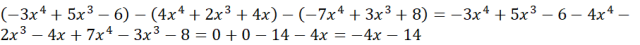 Żeby rozwiązać to zadanie, musisz wykonać działania, na wyznaczonym przykładzie dodając współczynniki przy odpowiednich potęgach.