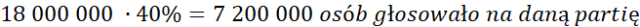Na podstawie podanych informacji oblicz, ile procent Polaków głosowało na daną partię.