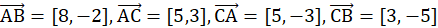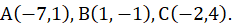 Należy wyznaczyć długości boków oraz miary kątów trójkąta ABC, jeżeli
