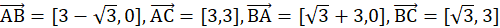 Należy wyznaczyć długości boków oraz miary kątów trójkąta ABC, jeżeli