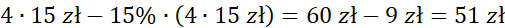 Na podstawie podanych informacji, oblicz ile zapłacisz za cztery oraz za trzy bilety i oblicz różnicę tych cen.