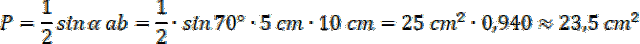 , gdzie a i b to długości boków trójkąta, a alfa to kąt zawarty między nimi.