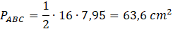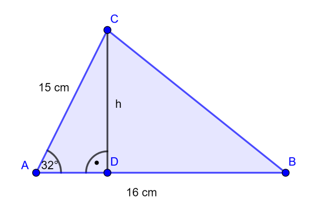 Oblicz pole trójkąta, którego długości boków wynoszą a=16 cm i b=15 cm, a miara kąta między tymi bokami γ=32°.
