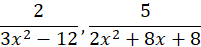 Wymnóż oba wyrażenia przez odpowiednie liczby tak, aby otrzymać identyczne mianowniki. Podaj założenia, wiedząc, że mianownik musi być różny od zera.