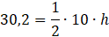 Podstaw dane pod wzór na pole trójkąta i oblicz h.