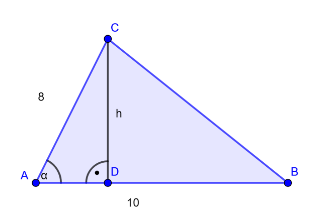 Wyznacz miarę kąta trójkąta ostrokątnego, którego długości boków wynoszą a=10 i b=8, a pole ma wartość P=30,2.