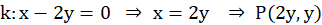 Należy wyznaczyć taki punkt P na prostej k: x - 2y = 0, aby spełniony był warunek
