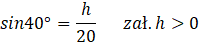 Korzystając z danych podanych w trójkącie na poniższym rysunku, oblicz wartość długości h z dokładnością do 0,1 cm.