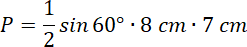 , gdzie a i b to długości boków trójkąta, a alfa to kąt zawarty między nimi.