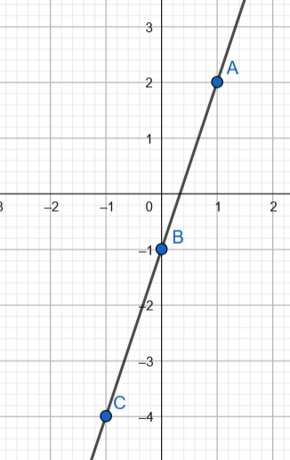 Ustal, czy punkty A, B, C są współliniowe. A=(1,2), B=(0,-1), C=(-1,-4)