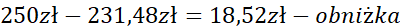 Najpierw ułóż proporcję i oblicz nową wysokość czesnego. Następnie odejmij tę wartość od poprzedniej wartości czesnego. Następnie oblicz, ile procent pierwotnego czesnego stanowi obniżka.
