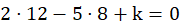 Należy wyznaczyć równanie ogólne prostej przechodzącą przez punkt P(12,-8) i prostopadłej do prostej k: -5x + 2y - 4 = 0.