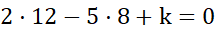 Należy wyznaczyć równanie ogólne prostej przechodzącą przez punkt P(12,-8) i prostopadłej do prostej k: -5x + 2y - 4 = 0.