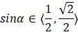 Określ, w jakim przedziale znajduje się wartość sinα, jeśli α należy do przedziału