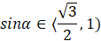 Określ, w jakim przedziale znajduje się wartość sinα, jeśli α należy do przedziału