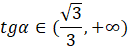 Określ, w jakim przedziale znajduje się wartość tgα, jeśli α należy do przedziału
