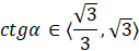 Określ, w jakim przedziale znajduje się wartość ctgα, jeśli α należy do przedziału
