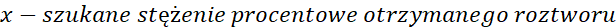 Ułóż odpowiednie równanie, znając wzór na stężenie procentowe roztworu i używając podanych liczb. Pamiętaj, żeby w obliczeniach uwzględnić masę soli już znajdującą się w roztworze.
