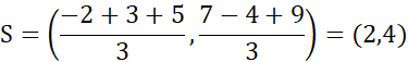 Należy podać punkt, będący środkiem ciężkości trójkąta o współrzędnych A(-2,7), B(3,-4), C(5,9).