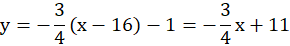 Należy podać równanie prostej l, która przechodzi przez punkt A(16,-1) oraz tworzącą z osią odciętych dwukrotnie większy kąt niż prosta k: y = 3x + 1 z tą osią.