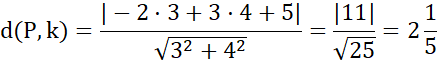 Należy podać odległość punktu P(-2,3) od prostej k: 3x + 4y + 5 = 0.