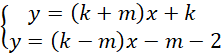 Nie istnieją takie wartości parametru m i k, dla których podane proste przecinają się w punkcie