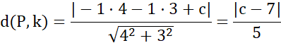 Należy wyznaczyć liczbę C, jeżeli odległość punktu P(-1,1) od prostej k: 4x - 3y + C = 0 jest równa 1.