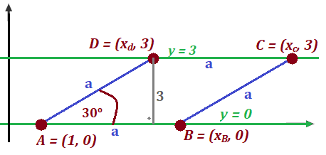 Narysuj sobie rysunek pomocniczy. Dzięki temu zauważysz, że odległość między dwoma prostymi to 3. Następnie wykorzystujesz znajomość kąta