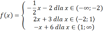 Skorzystaj z podanego rysunku oraz wiedzy na temat współczynników funkcji liniowych, aby wyznaczyć wzory prostych w odpowiednich przedziałach.
