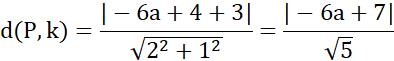 Należy wyznaczyć liczbę a, jeżeli odległość punktu P(3a, 4) od prostej k: -2x + y + 3 = 0 jest równa