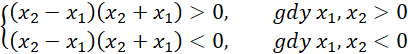 Różnica wartości funkcji większego argumentu oraz wartości mniejszego argumentu jest ujemna w zadanym przedziale, co oznacza, że funkcja w dziedzinie (-∞;0) jest funkcją malejącą. – c.n.d.