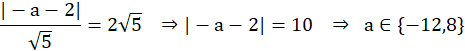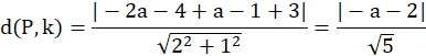 Należy wyznaczyć liczbę a, jeżeli odległość punktu P(a + 2, a - 1) od prostej k: -2x + y + 3 = 0 jest równa
