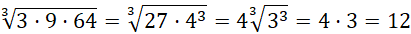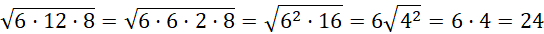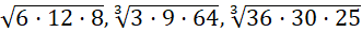 Oblicz wartość podanych pierwiastków. Najprościej jest grupować czynniki w potęgi dwójki (lub trójki), wtedy łatwo można taki kwadrat (lub sześcian) wyciągnąć przed pierwiastek.