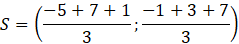 Wyznaczasz środek ciężkości trójkąta ze wzoru: