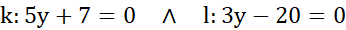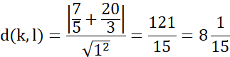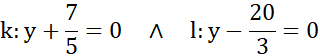 Należy podać odległość między dwiema prostymi równoległymi k: 5y + 7 = 0, l: 3y - 20 = 0.