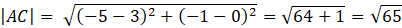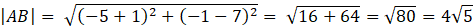 Twoim zadaniem jest obliczenie obwodu i pola trójkąta, którego wierzchołki znajdują się w punktach 𝐴 = (−5, −1), 𝐵 = (−1, 7), 𝐶 = (3, 0).