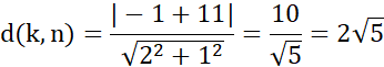 Należy wykazać, że odległość między k: 2x - y - 1 = i m: 2x - y + 9 = 0 jest taka sama jak między k i n: 2x - y - 11 = 0.