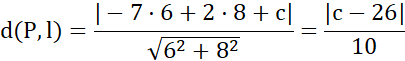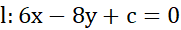 Należy wyznaczyć równanie prostej l, będącej odległej od 3 od punktu P(-7,-2) oraz równoległej do prostej k: 6x - 8y + 1 = 0.