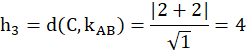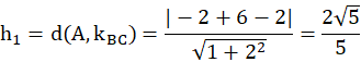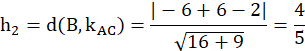 Należy obliczyć wysokość trójkąta o wierzchołkach A(-2,3), B(-2,2), C(2,0).