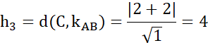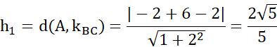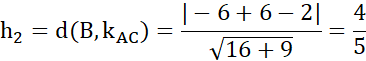 Należy obliczyć wysokość trójkąta o wierzchołkach A(-2,3), B(-2,2), C(2,0).