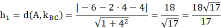 Należy bez wyznaczania czwartego wierzchołka podać długości obu wysokości równoległoboku ABCD, jeżeli A(-6,2), B(-4,-2), C(4,0).
