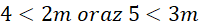 Wyznacz wartości parametru m, dla których punkt przecięcia prostych o podanych równaniach: