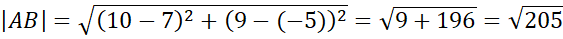 Udowodnij, że trójkąt o wierzchołkach A=(7,-5), B=(10,9), C=(-6,1) jest równoramienny, a następnie wyznacz równanie jego osi symetrii