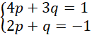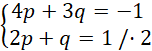 Skoro parametry p i q są całkowite, to ich sumy również muszą być całkowite. Zatem są dwie możliwości: