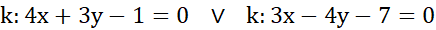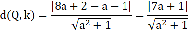 Należy wyznaczyć równanie prostej k zawierającej punkt P(1,-1) i odległej o 5 od punktu Q(8,-2).
