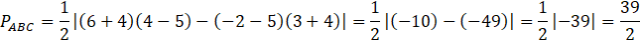 Należy obliczyć pole trójkąta o wierzchołkach A(-4,5), B(6,-2), C(3,4).
