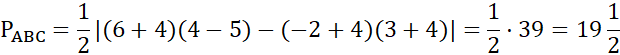 Należy obliczyć pole trójkąta o wierzchołkach A(-4,5), B(6,-2), C(3,4).